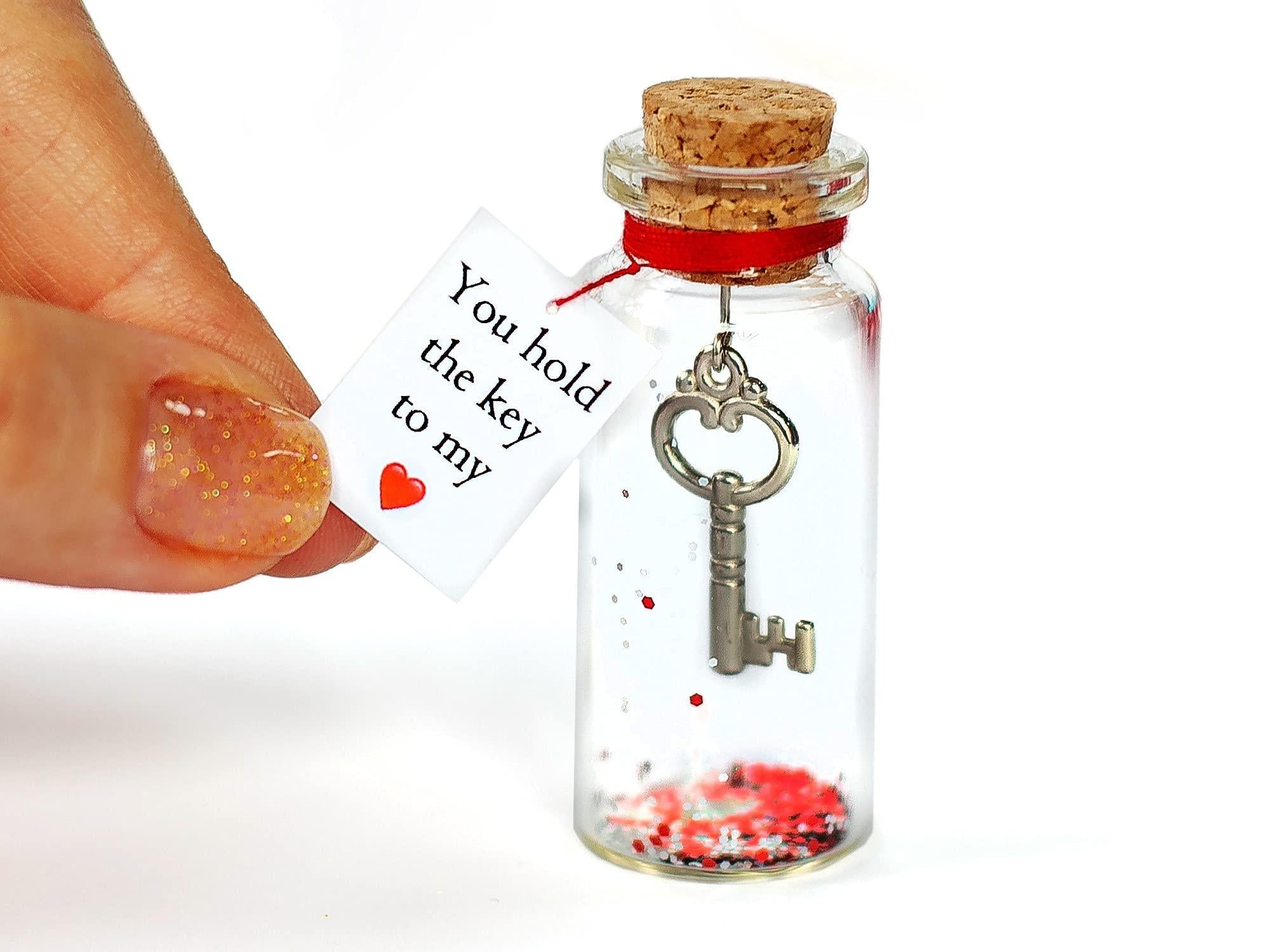 Unique Romantic and Valentines Day Gifts for Him or Her Lovely Tiny Key or Heart in a Jar with Customizable Message Card, or Big Bottle and Heart for you to choose Cute Stuff for your Boyfriend or Girlfriend with a Wish Card Hanging Inside This Special Day Present Remind Loved One About Your Feelings Surprise your Beloved Person with this Awesome Piece of Art Creative Valentine Presents Handcrafted Piece of Art to Surprise Your Loved Ones Pick pre-written or Customized Gifts for Your Spouse and Family Member: You're Still the Best Decision I Ever Made, or You Hold the Key to My Heart, or our Christmas Jars, or Your Own Custom Quote or Text Choose the Packaging for Beautiful Decor Jar Cute Decoration and Message in a Bottle In a Teal Blue Box or in Bright Craft Package or Hanging in a White Wooden Frame