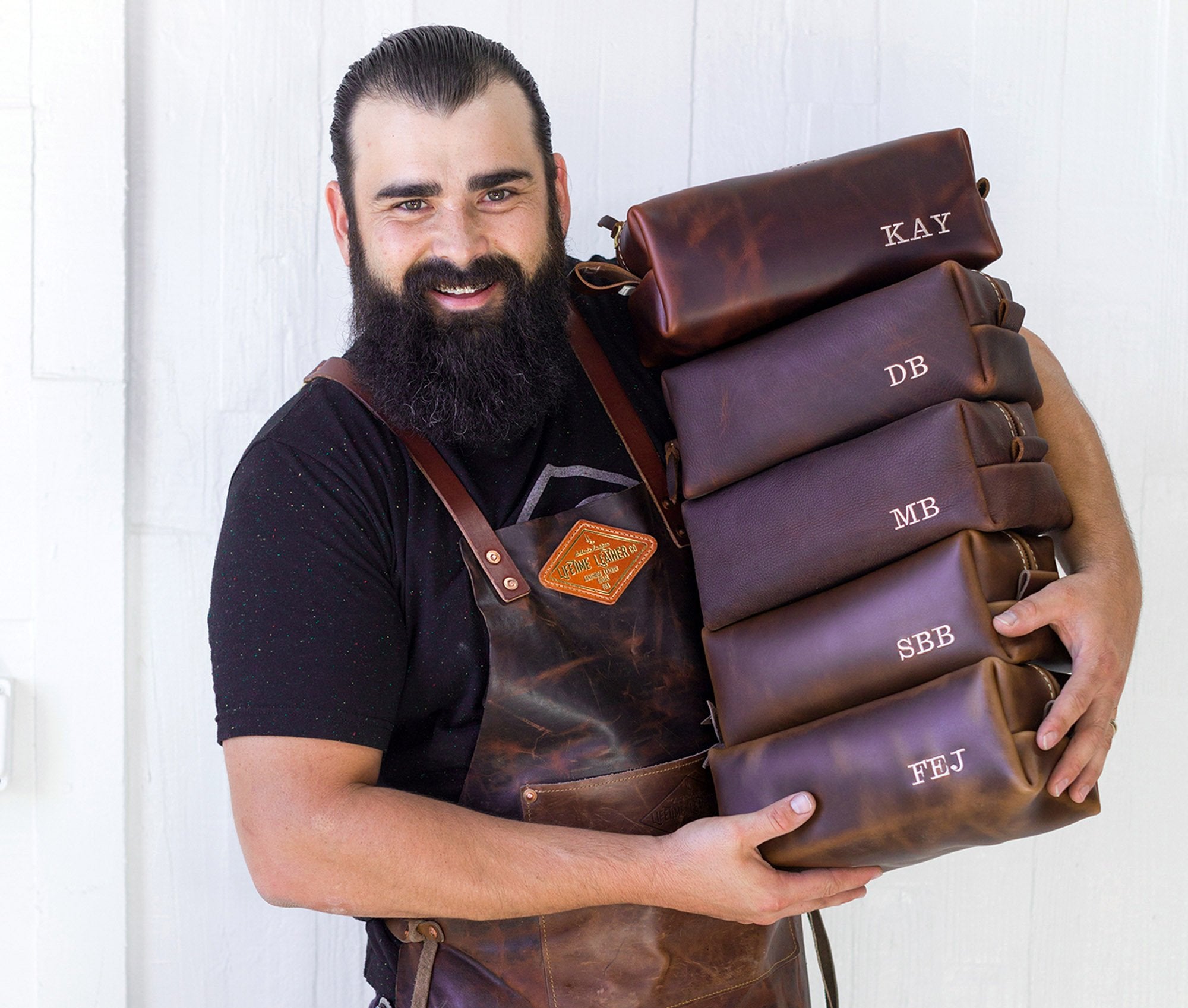 Meticulously handcrafted with authentic full grain leather, heavy duty hardware, and lined with a black, water-resistant liner to make clean ups a breeze. This bag is a perfect gift for yourself, your husband, boyfriend, or groomsmen!