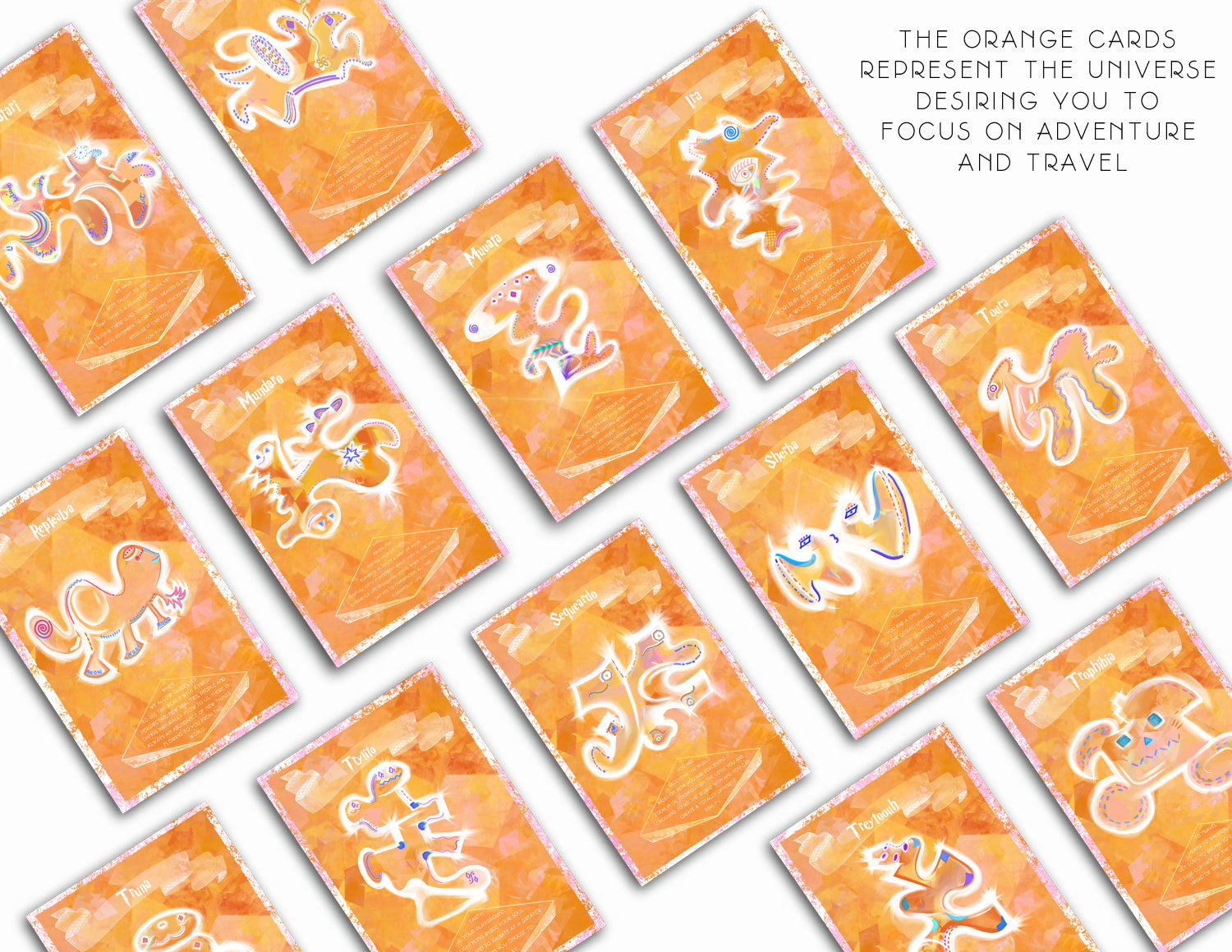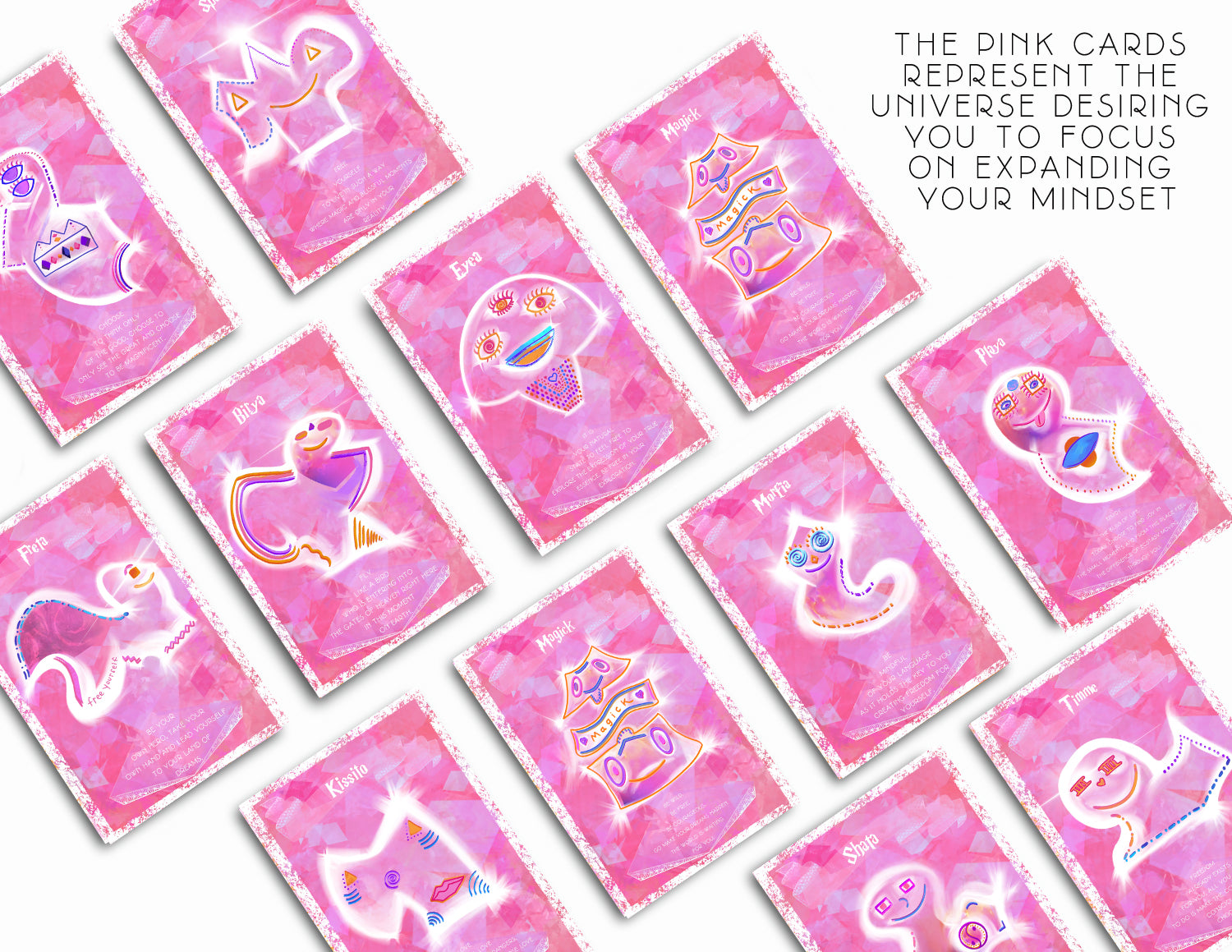 These magical creatures guidance cards are similar to a tarot deck, yet different because they focus on bridging spirituality and business. These guidance cards share messages from the universe with you so you can improve your mindset, your business, and the adventures you can have in life. These cards will activate your spiritual gifts to guide you to grow your income and impact to a whole new level. There are 52 cards, with 4 different colored backgrounds, and each card has a different creature that offers a message on it from the universe.