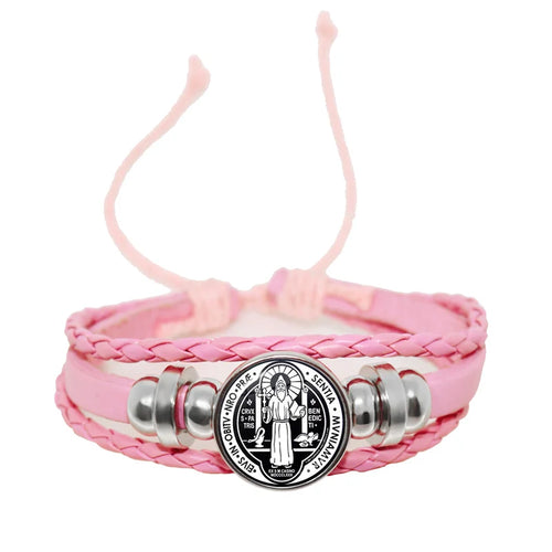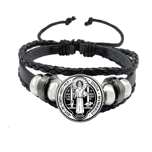 Saint Benedict Medallion Bracelet I LOVE JESUS Glass Art Picture