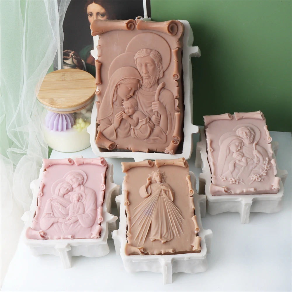 Large Jesus Statue Candle Mold Catholic Apostle Portrait Gypsum Concrete Resin Casting Tool DIY Jesus Family Silicone Mold Decor
