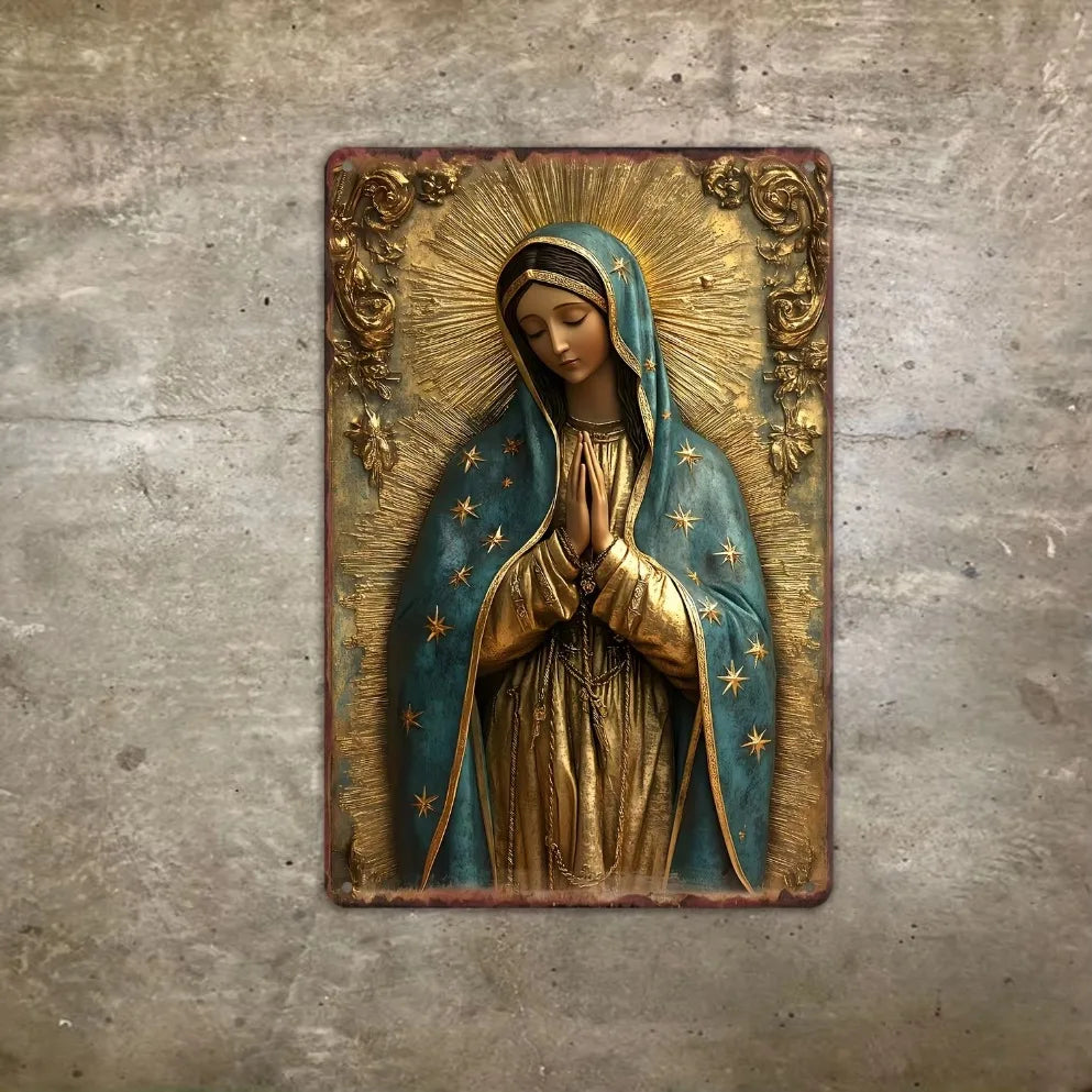 Vintage Virgin of Guadalupe Metal Sign, Rustic Americana Style Aluminum Wall Art, Religious Mary Icon![]()