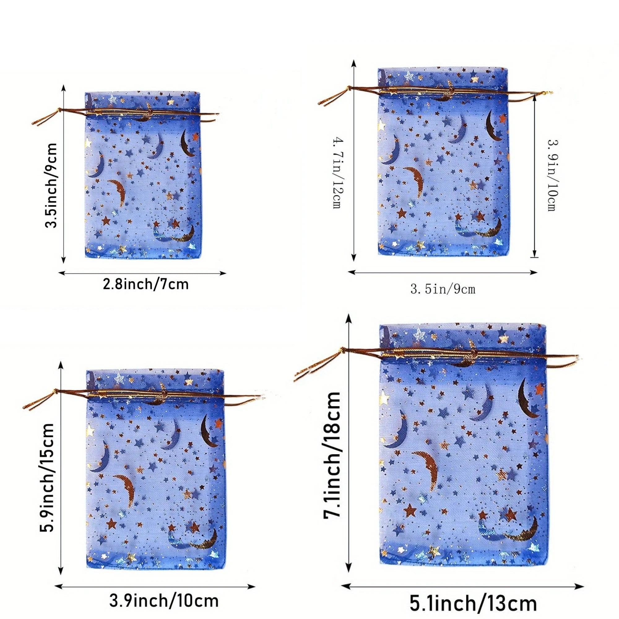 50PCS Moon Stars Drawstring Organza Bags Jewelry Gift Bags Pouches
