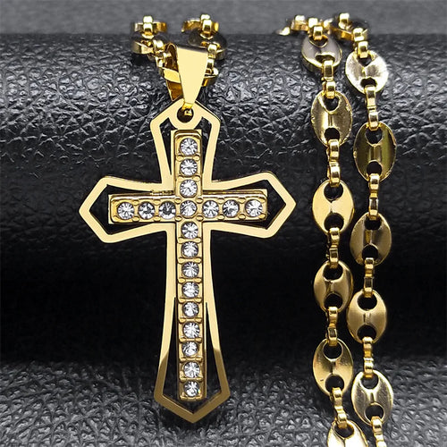 - Jesus Cross Crucifix Pendant Necklace for Men Stainless Steel Gold Color Christian Coffee Bean Chain Jewelry croix chrétienne
