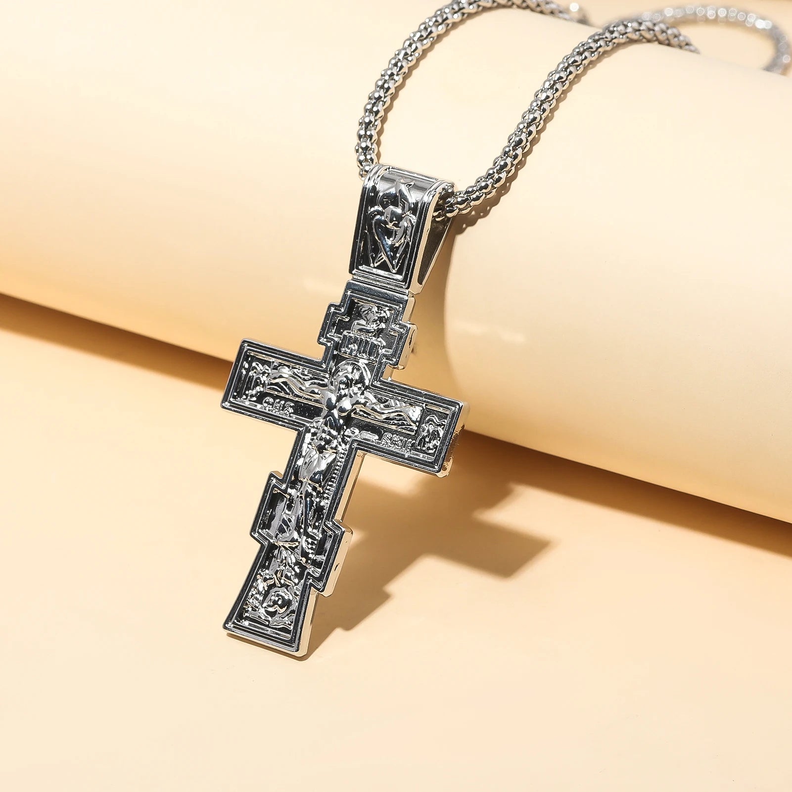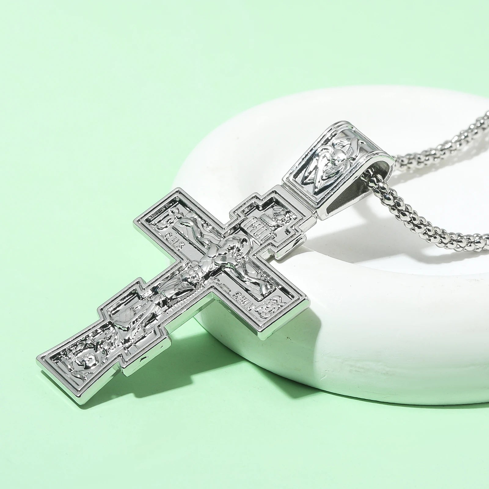 Movie John Wick Jesus Cross Necklace Crucifix Eastern Orthodox Prayer